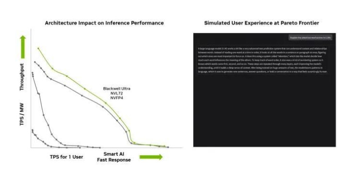 性能效率方面,Blackwell Ultra GB300 的每兆瓦吞吐量(TPS/MW)较 Blackwell GB200 进一步提升(具体数据见下图)。