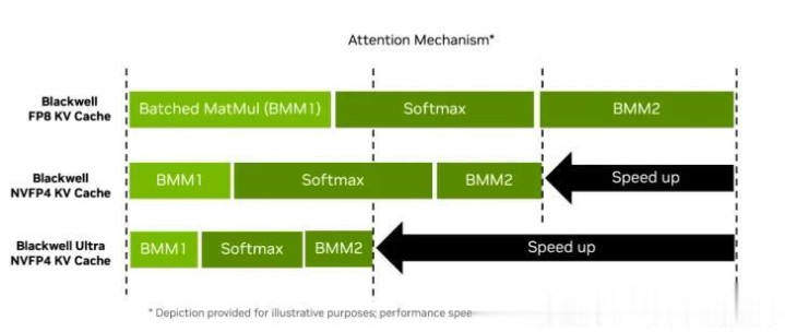 得益于全新 NVFP4 标准,英伟达 Blackwell Ultra GB300 平台的密集低精度计算输出提升 50%,同时保持接近 FP8 的精度水平(差异通常小于 1%)。与 FP8 相比,NVFP4 还能将内存占用减少 1.8 倍,较 FP16 减少 3.5 倍。